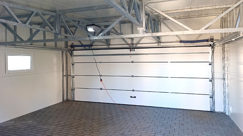 Kapu típusa: 1db szigetelt, motorizált szekcionált kapu, az elülső falon középen