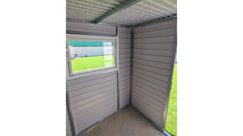 A DELUX kivitelű fém kerti tároló (más néven lemez tároló vagy trapézlemez kerti tároló) alapára már tartalmazza a gyártást, a szállítást és az összeszerelést.